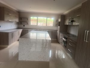 _Luxurious Kitchen:_ The heart of the home features quartz countertops in earthy colors, perfectly complementing the outdoors and creating a seamless blend of indoor and outdoor living. This kitchen also boasts a gas hob for the ultimate cooking experience.