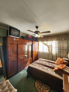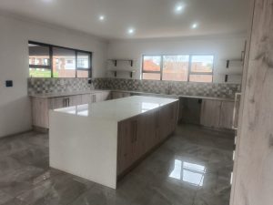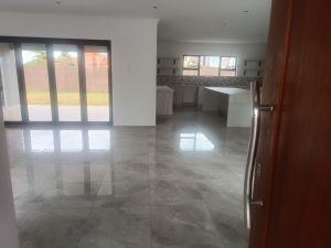 This stunning home boast a modern architectural design and charming features, located in an elite area. Interior Features includes in open plan formal lounge, dining room and TV room with porcelain tiles. Beautiful, Oak fitted kitchen with ample built-in cupboards, breakfast nooks and a scullery. Offering 3 bedrooms with built-in cupboards and 2 aircons. The main double volume bedroom has 2 walk in closets and an ensuite. Neat and spacious common bathroom. Additional features include, a study, guest bathroom, 2 alarms systems. There’s ample parking and Outdoor Space with 3 garages, carport for six vehicles,12 open parking and a domestic room with an ensuite. The yard is spacious, tiled and has a well-manicured garden.